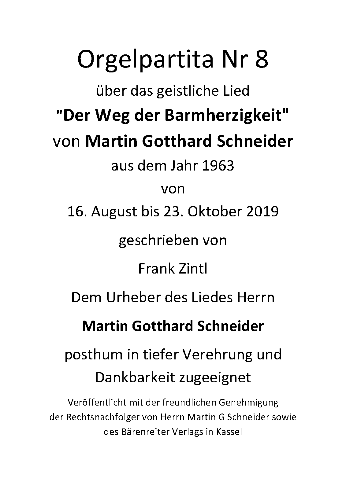 Organ Partita No.8 'Der Weg der Barmherzigkeit'