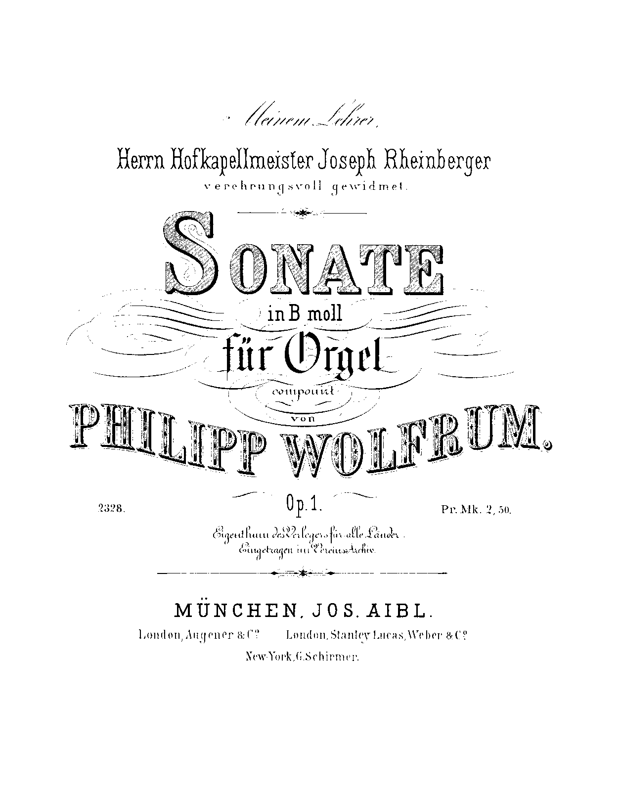 | Dedication | Meinem Lehrer Herrn Hofkapellmeister Josef Gabriel Rheinberger |