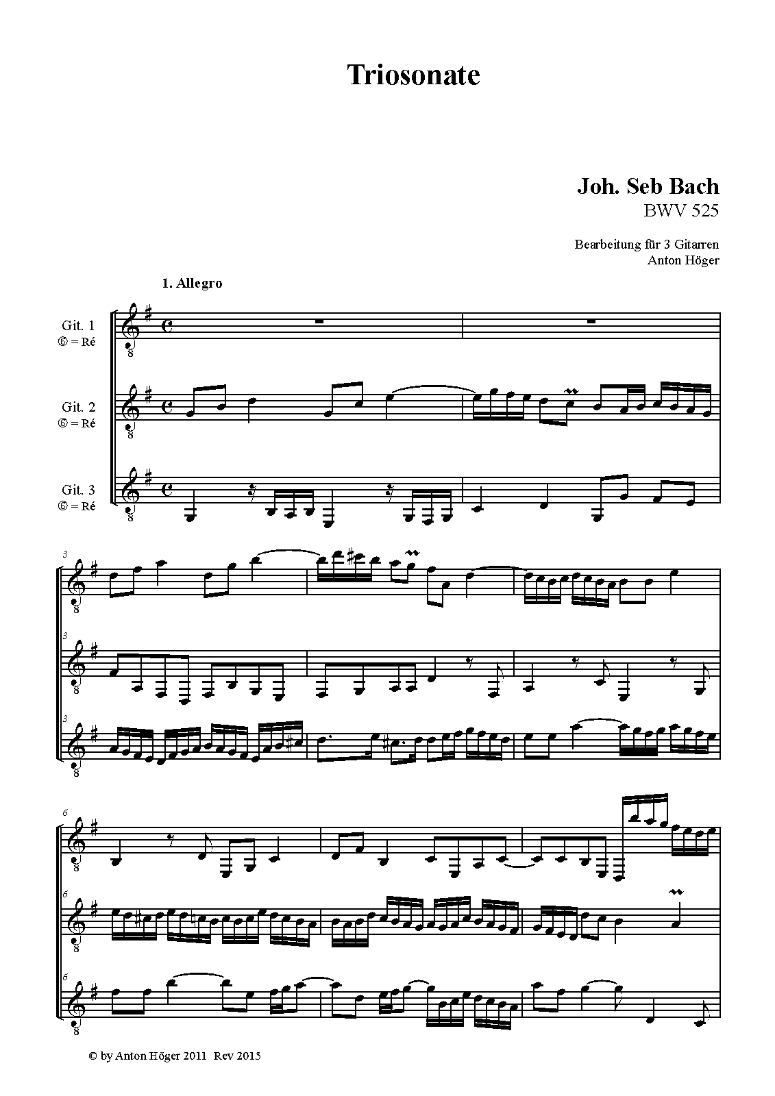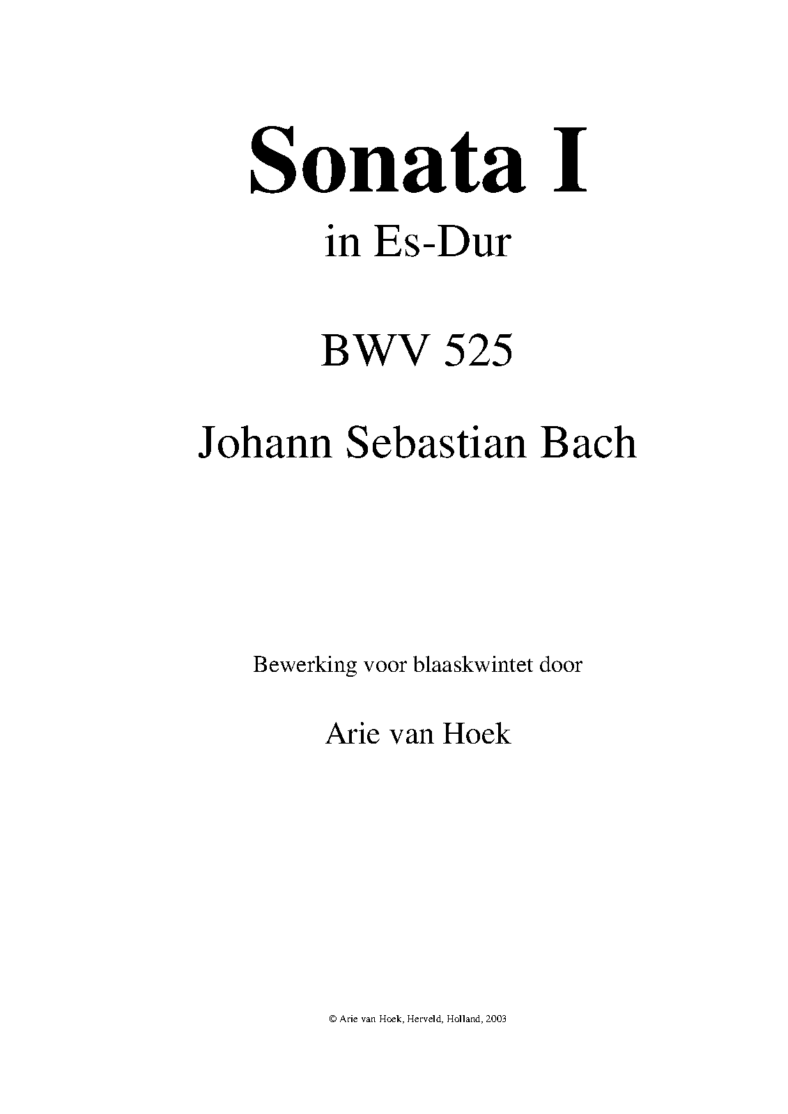 Opus/Catalogue NumberOp./Cat. No. BWV 525 ; BC J 1