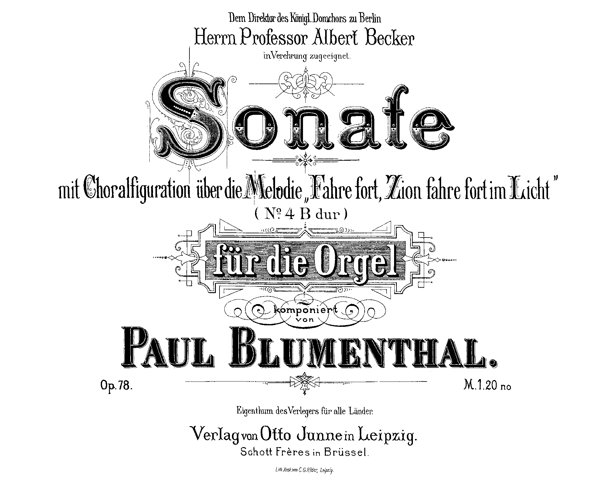 | Alternative. Title | Sonate mit Choralfiguration über die Melodie "Fahre fort, Zion fahre fort im Licht" für die Orgel (N°. 4 B-Dur) op. 78 |