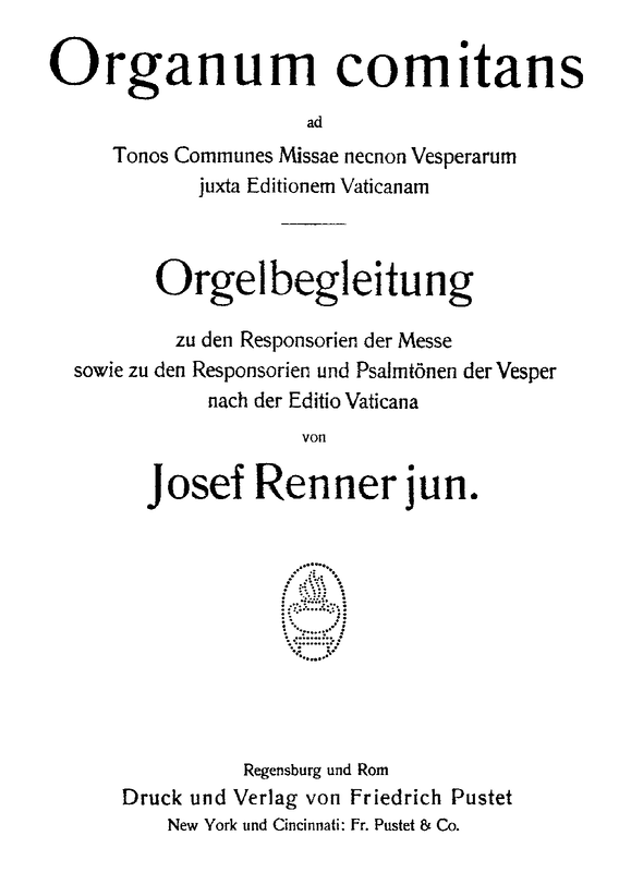 | Alternative. Title | Organum comitans ad Tonos Communes necnon Vesperarum juxta Editionem Vaticanam Orgelbegleitung zu den Responsorien der Messe sowie zu den Responsorien und Psalmtönen der Vesper nach der Editio Vaticana |