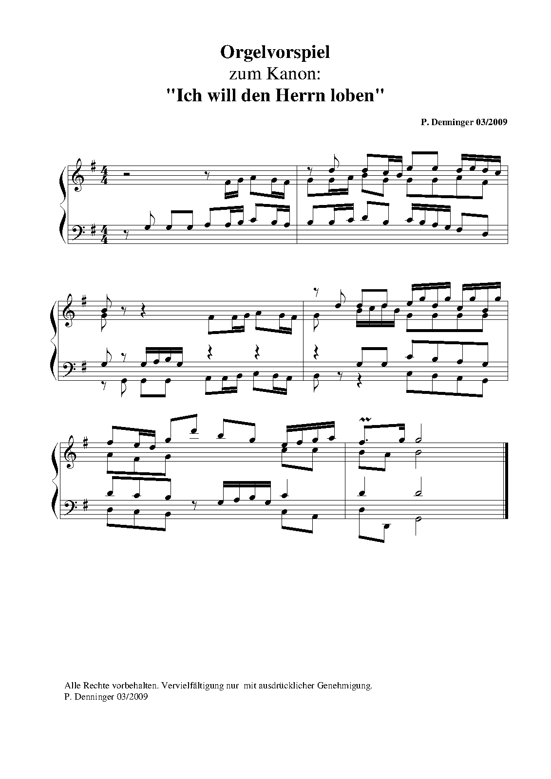 | Work Title | Orgelvorspiel zum Kanon Ich will den Herrn loben |