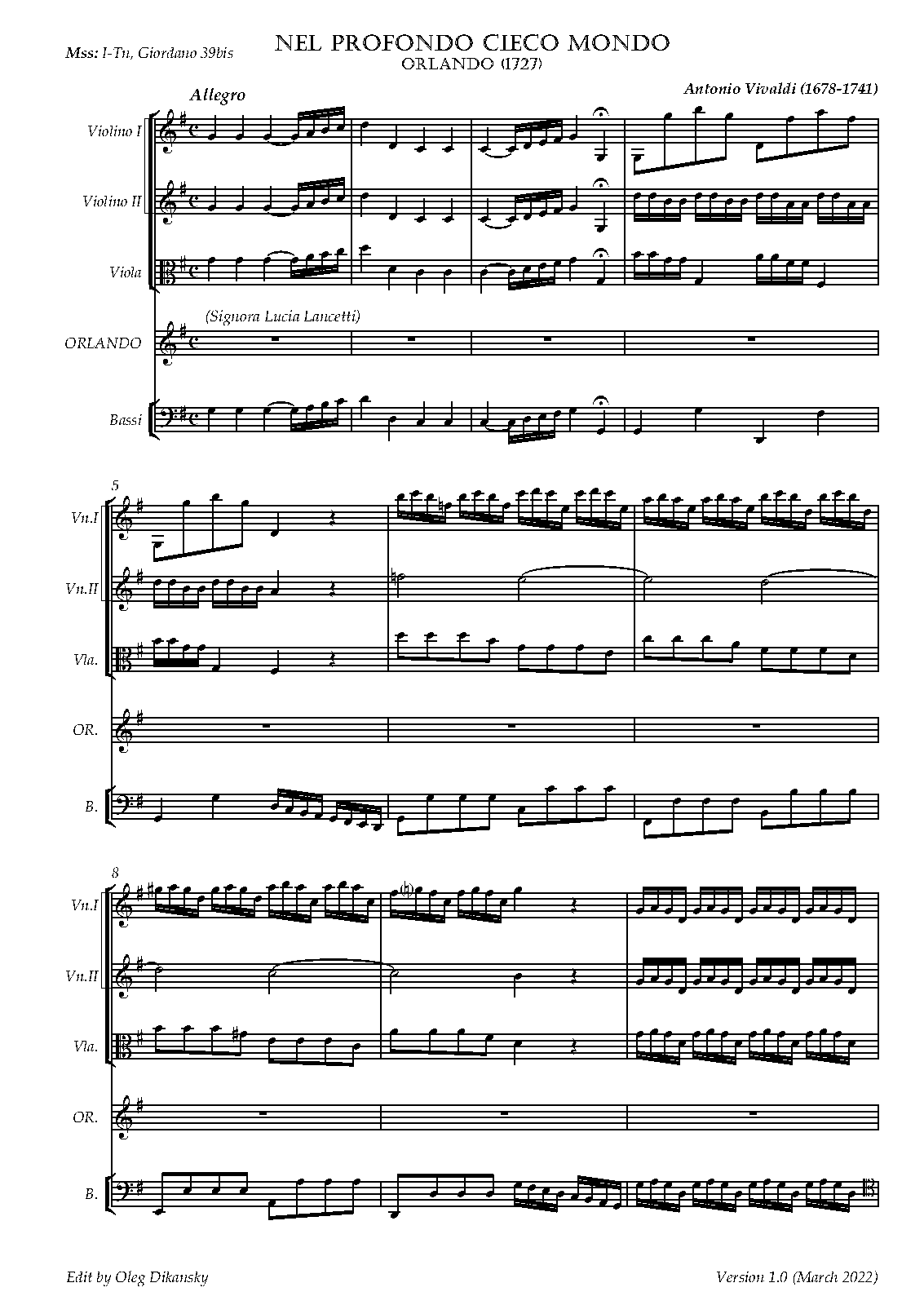Act I, Sc.5. Aria (Orlando): Nel profondo cieco mondo