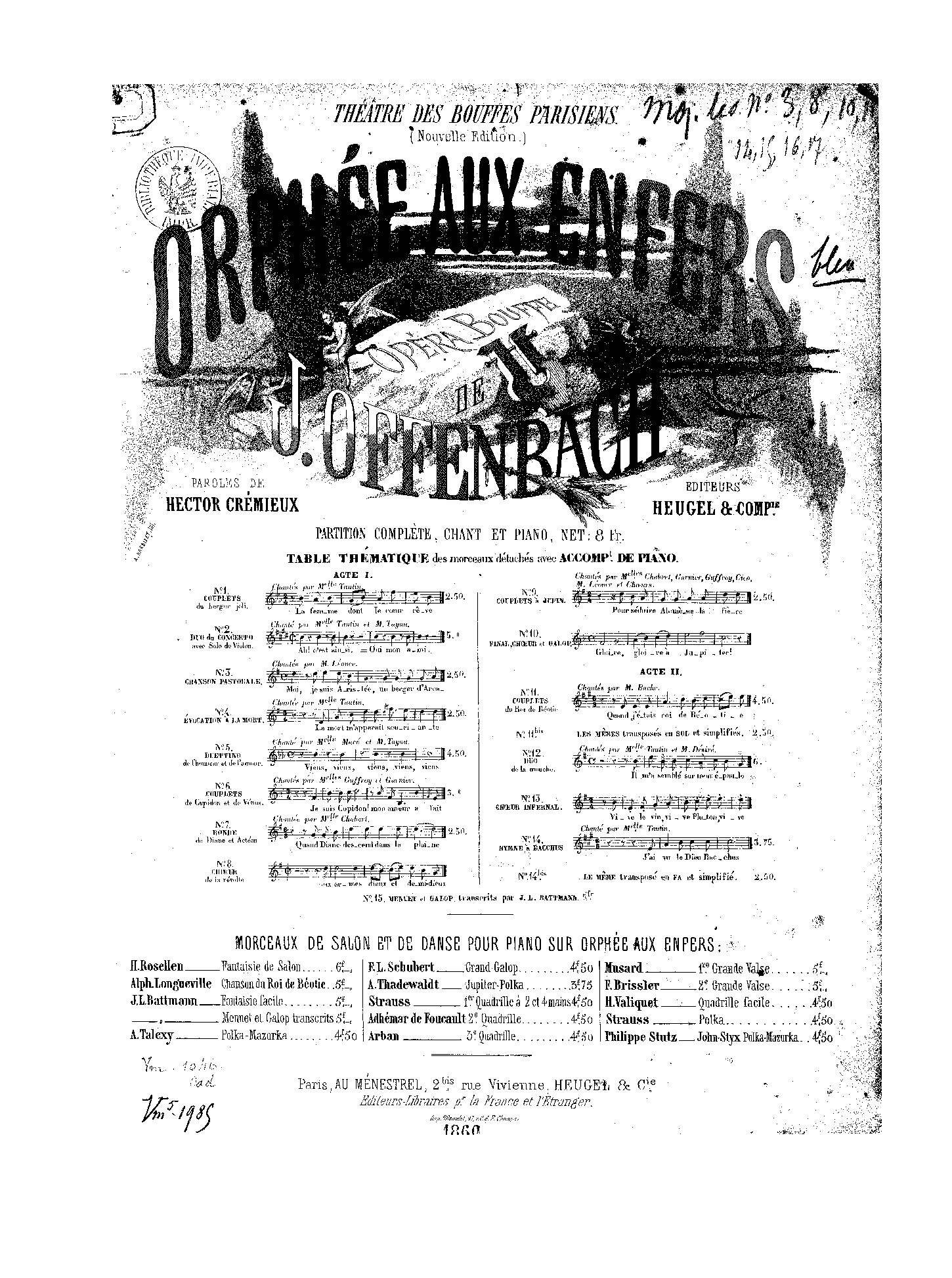 | Work Title | Orphée aux enfers |
