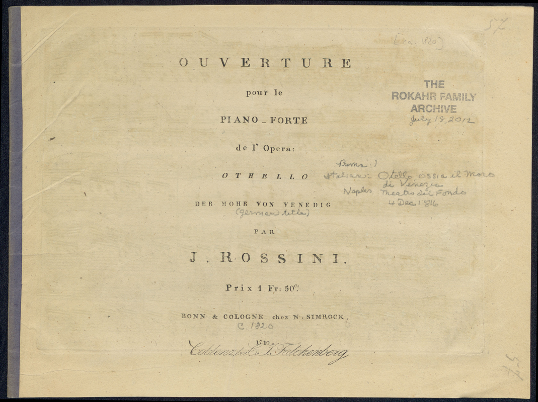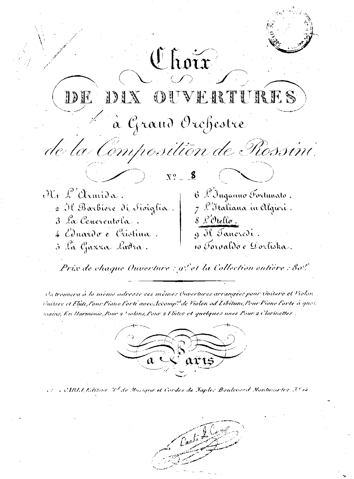 Publisher. Info. Milano: Ricordi, n.d.[1826]. Plate B 2546 G.