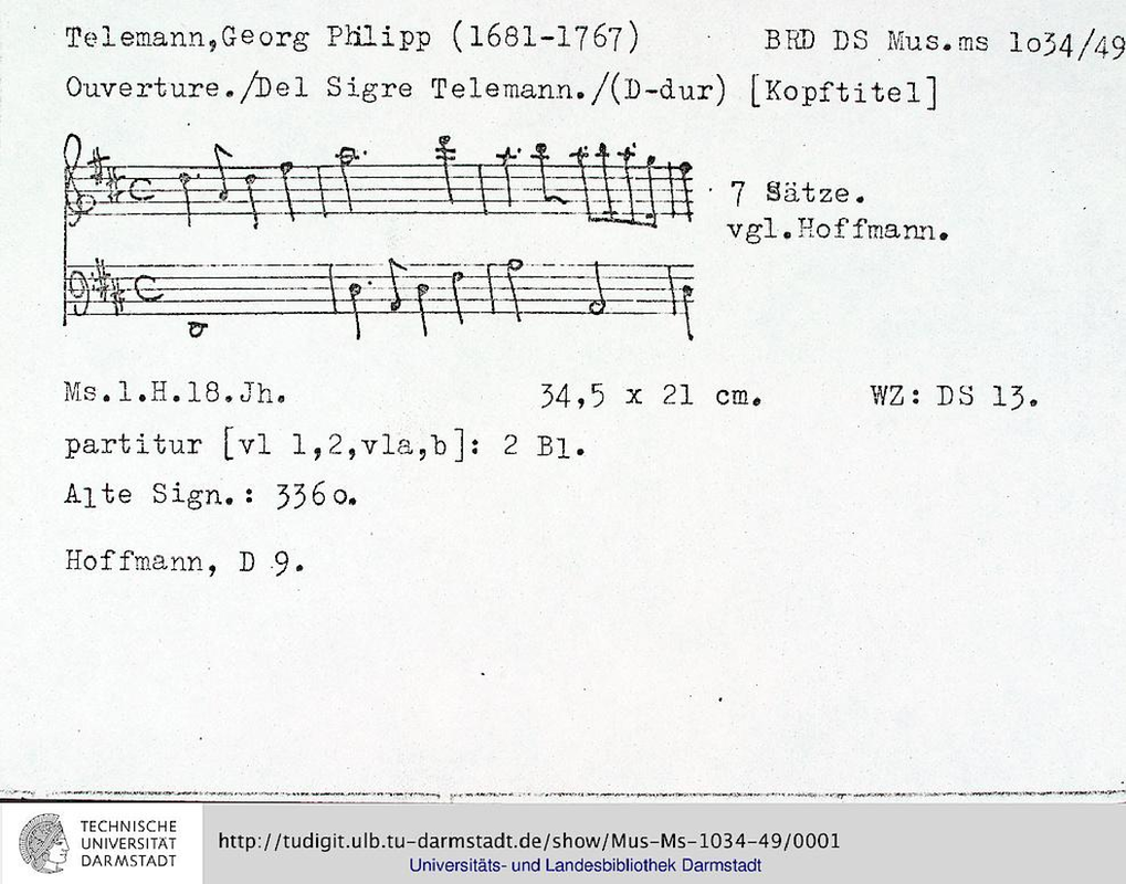 | Opus/Catalogue NumberOp./Cat. No. | TWV 55:D9 |