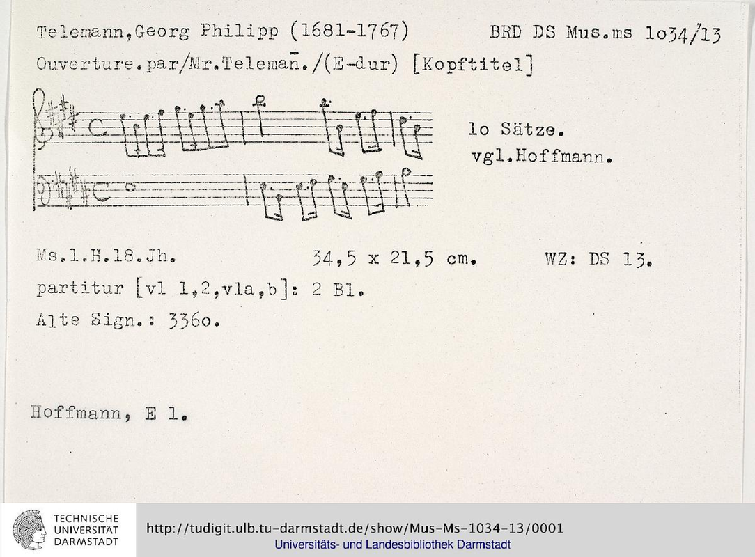 | Opus/Catalogue NumberOp./Cat. No. | TWV 55:E1 |
