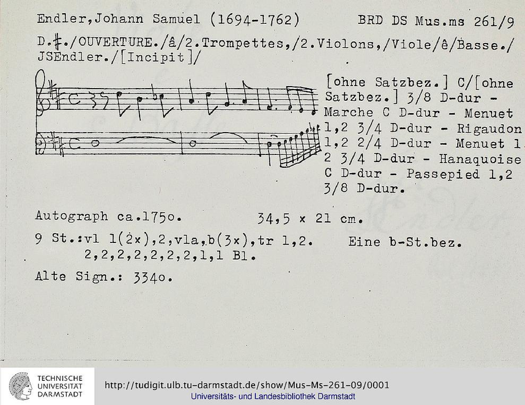 | Composer | Endler, Johann Samuel |