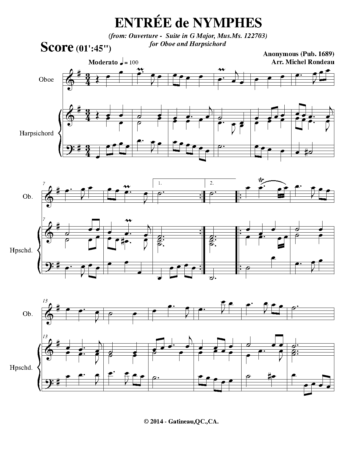 The score contains many indications that certain passages are to be played by 'fluttes' and 'viol'. Oboes may have also been intended, as with the other Suites in the collection.