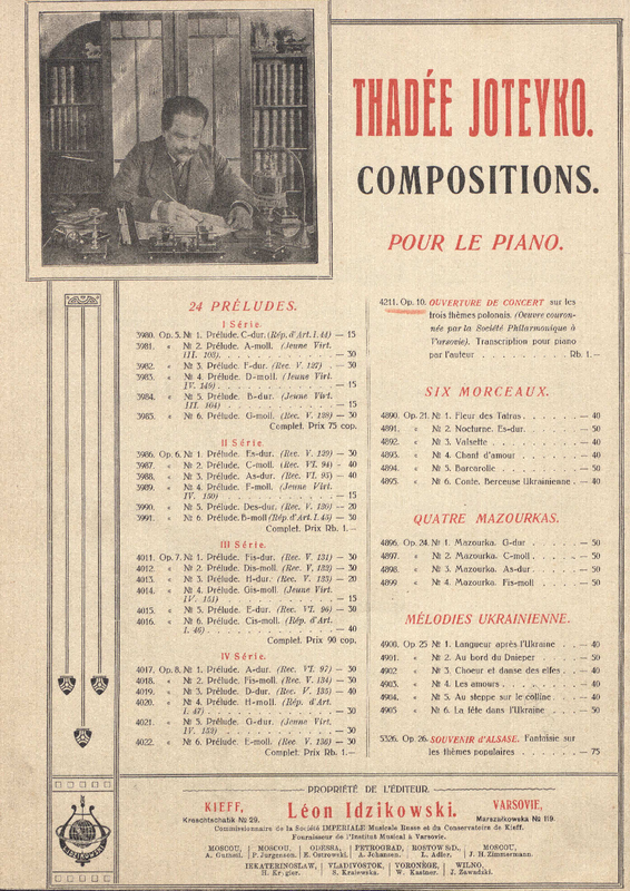| Dedication | à mon maître et ami Sigismond Noskowski (Zygmunt Noskowski, 1846–1909) |