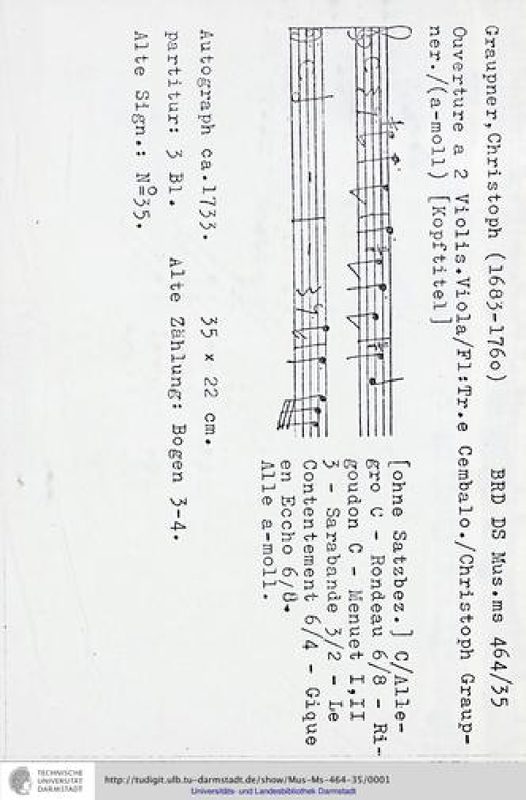 | Genre Categories | Overtures; For flute, strings, continuo; Scores featuring the flute; |