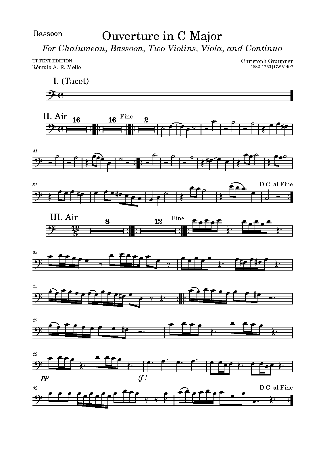 | Instrumentation | chalumeau (bass), bassoon, strings, basso continuo |