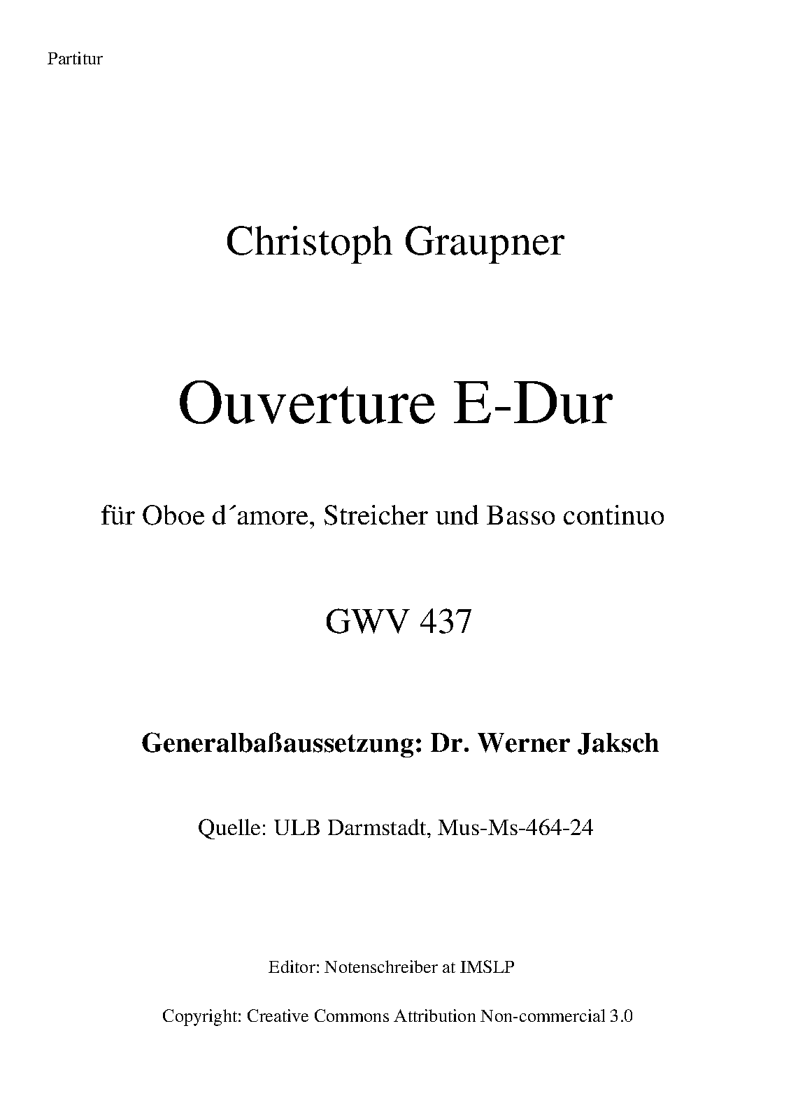 After this edition here also published by Prima la Musica! in the same year (2012) in their ongoing series of Graupner's complete overtures.