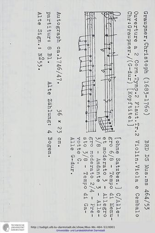 | InstrDetail | 2 flutes, 2 horns, timpani, strings, continuo |
