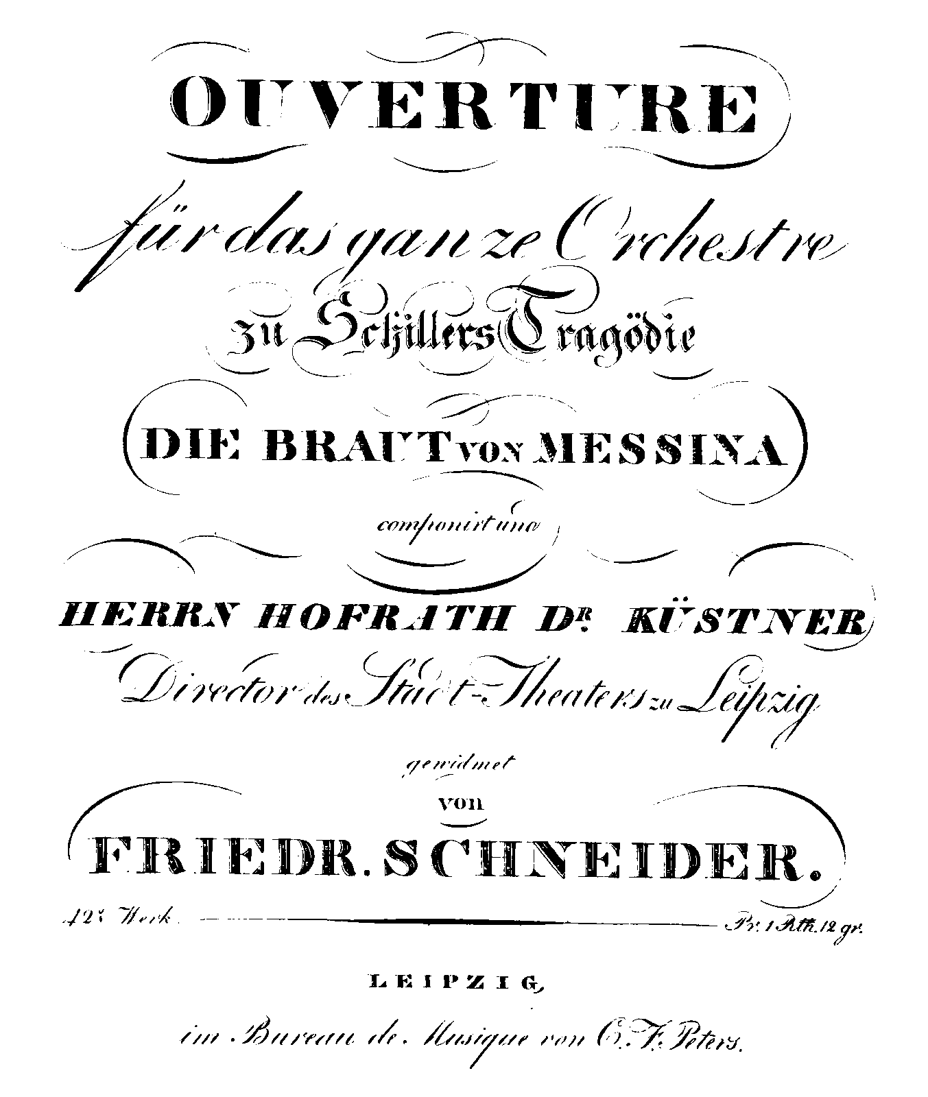 | Alternative. Title | Ouverture für das ganze Orchester zu Schillers Tragödie 'Die Braut von Messina' |
