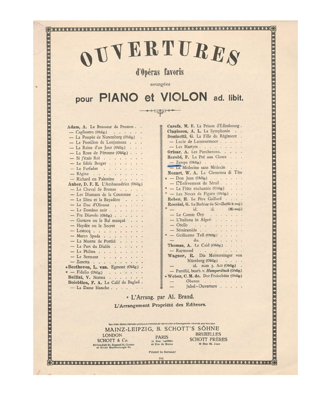 First published in the 1830s, but later (ca.1880) reprinted as part of a longer series of overtures Ouvertures d'opéras favoris (Various).