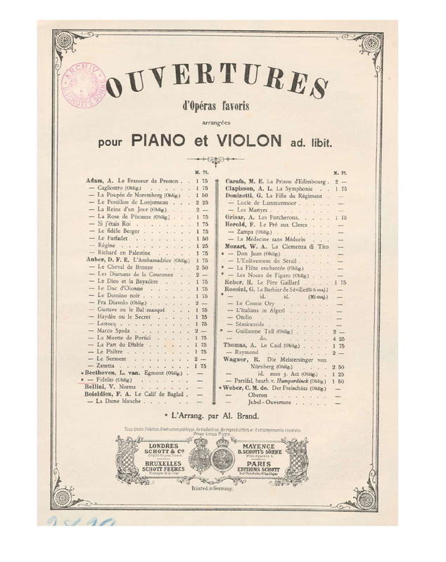 | Genre Categories | Overtures; For piano (arr); For 1 player (arr); |