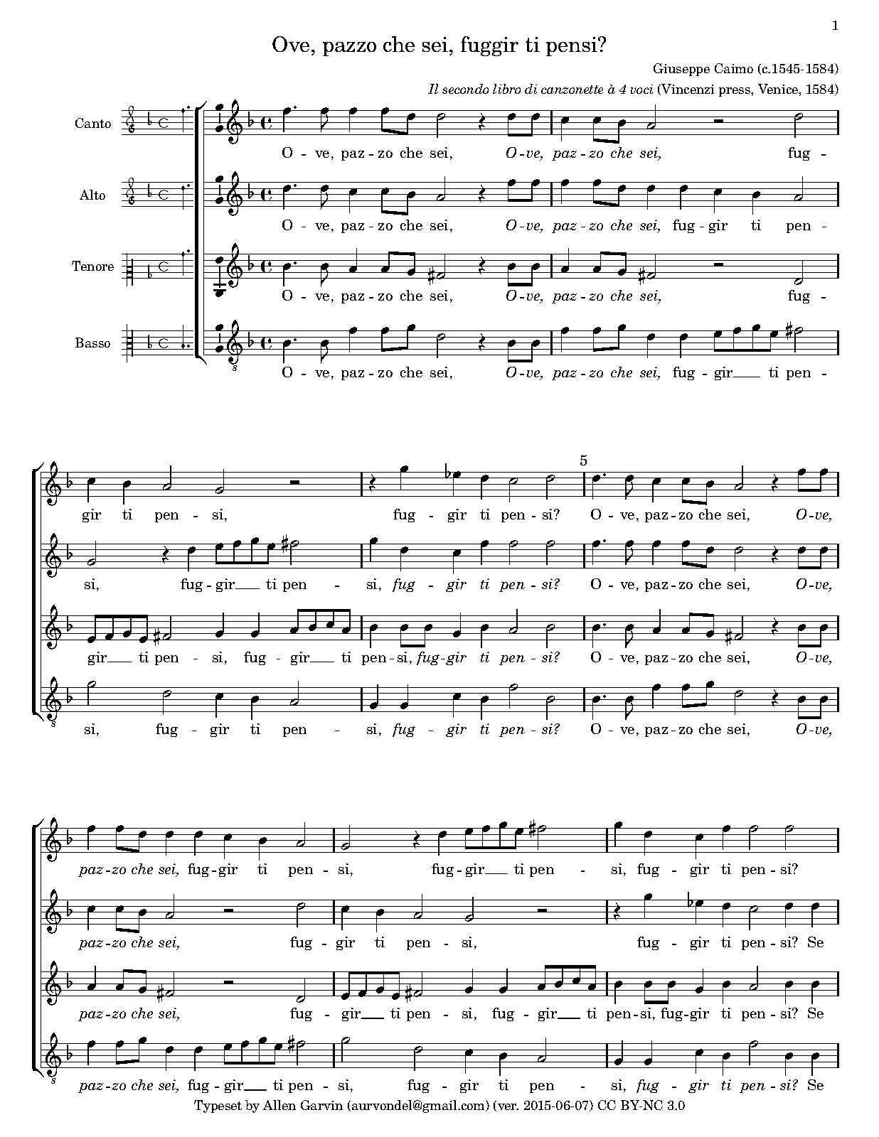 | First Publication | 1584 in Il secondo libro de canzonette a 4 voci (no.5) |