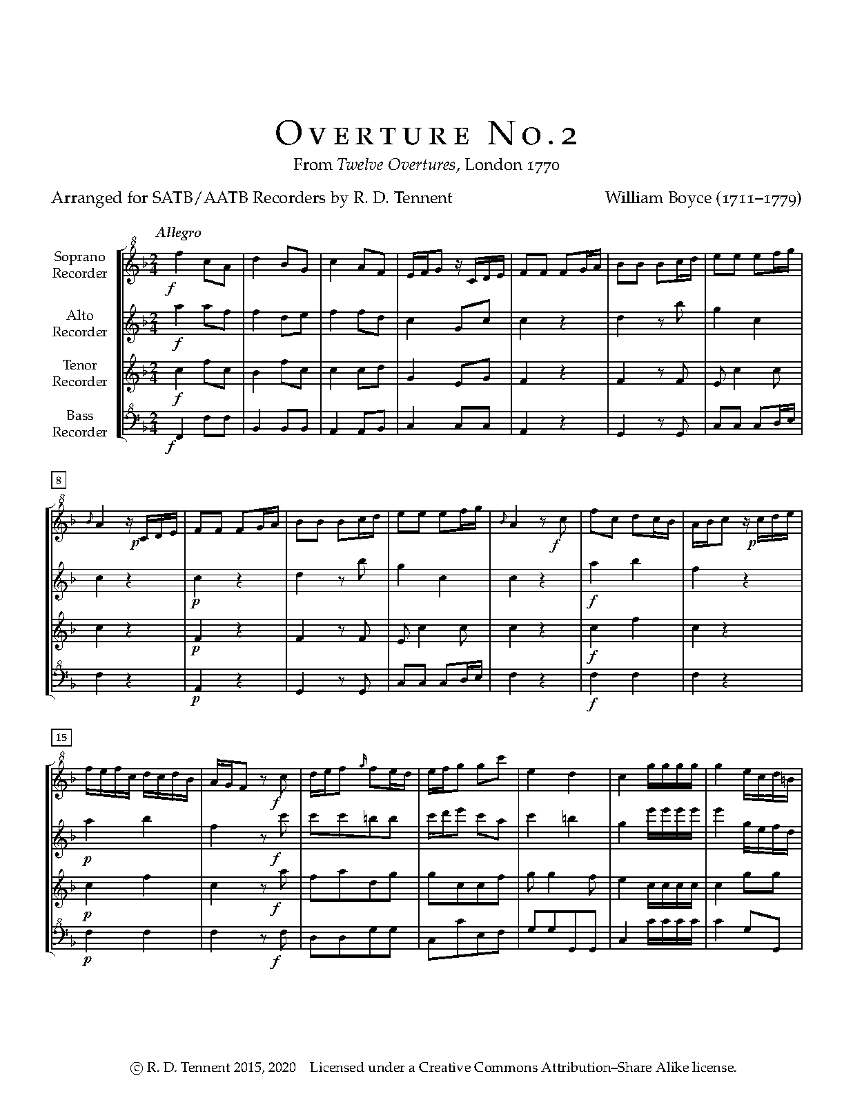From "Twelve Overtures in Seven, Nine, Ten, and Twelve parts", London 1770. Originally the Symphony to "Hail to the rosy morn", Ode for his Majesty's Birthday 1765.