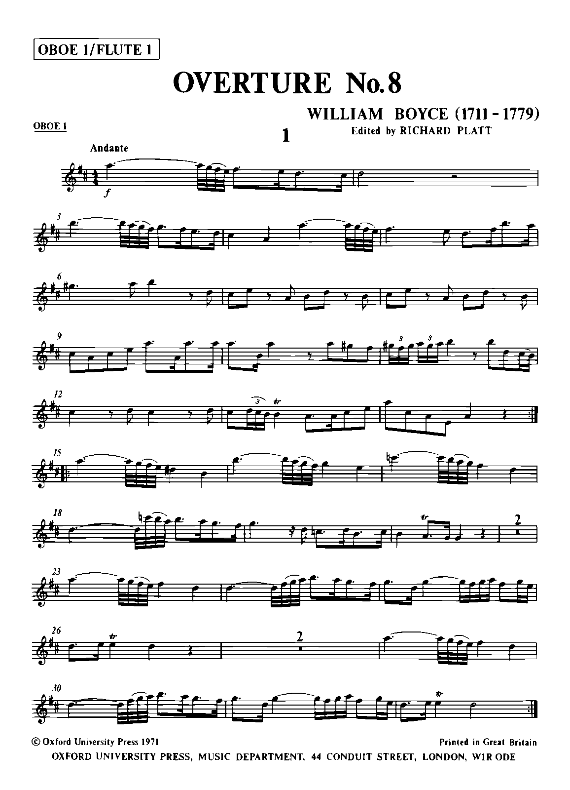 From "Twelve Overtures in Seven, Nine, Ten, and Twelve parts", London 1770. Originally the Overture to the Ode for His Majesty's Birthday 1761 'Twas at the nectar'd feast'