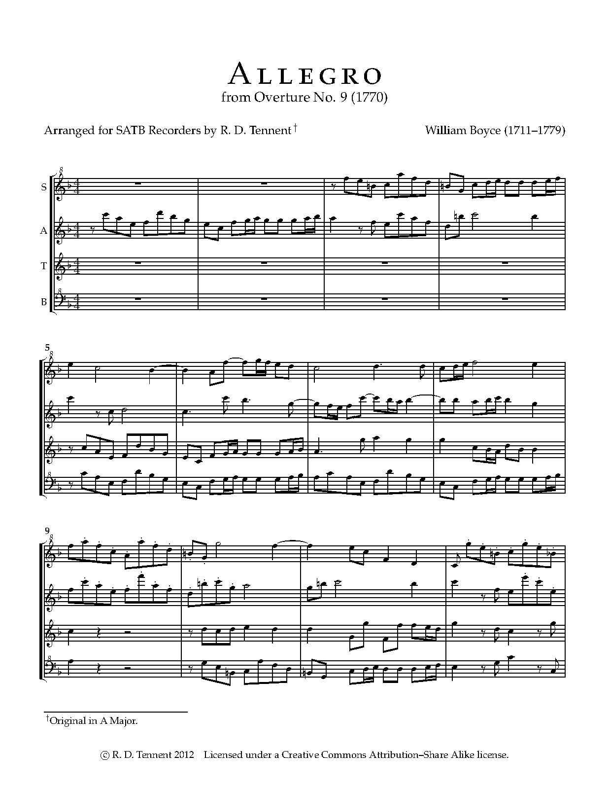 From "Twelve Overtures in Seven, Nine, Ten, and Twelve parts", London 1770. Originally the Symphony to "Let the voice", Ode for the New Year 1768.