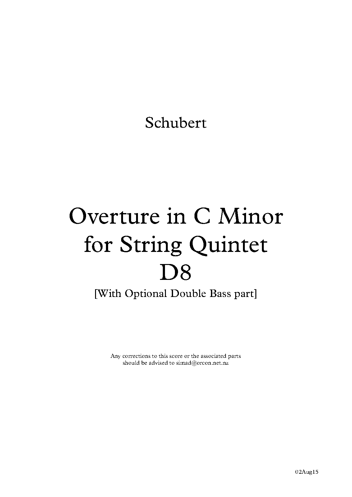 For 2 Violins, Viola and Cello (D.8a)