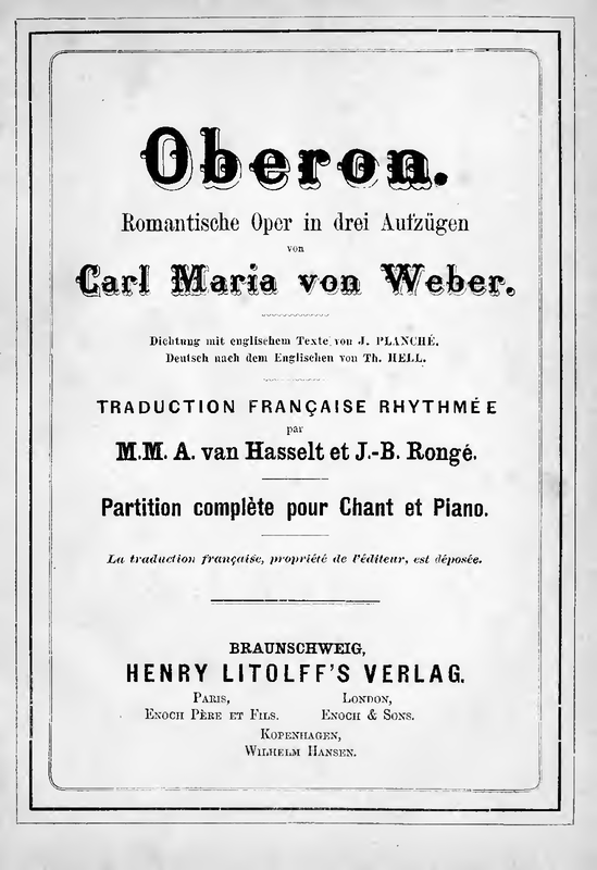 | Alternative. Title | Romantic and Fairy Opera in 3 Acts |