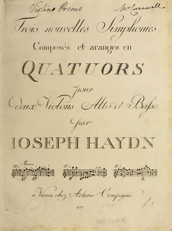 London: William Forster, n.d. Plate 9, 22, 37, 40-42, 45, 77-82, 48, 49, 60, 49[bis]. London: William Napier, n.d. Plate 65. (Hob.I:43 and Hob.I:47) London: J. Bland, n.d. (c.1783). (Hob.I:75, Hob.I:63, Hob.I:79, and Hob.I:64)