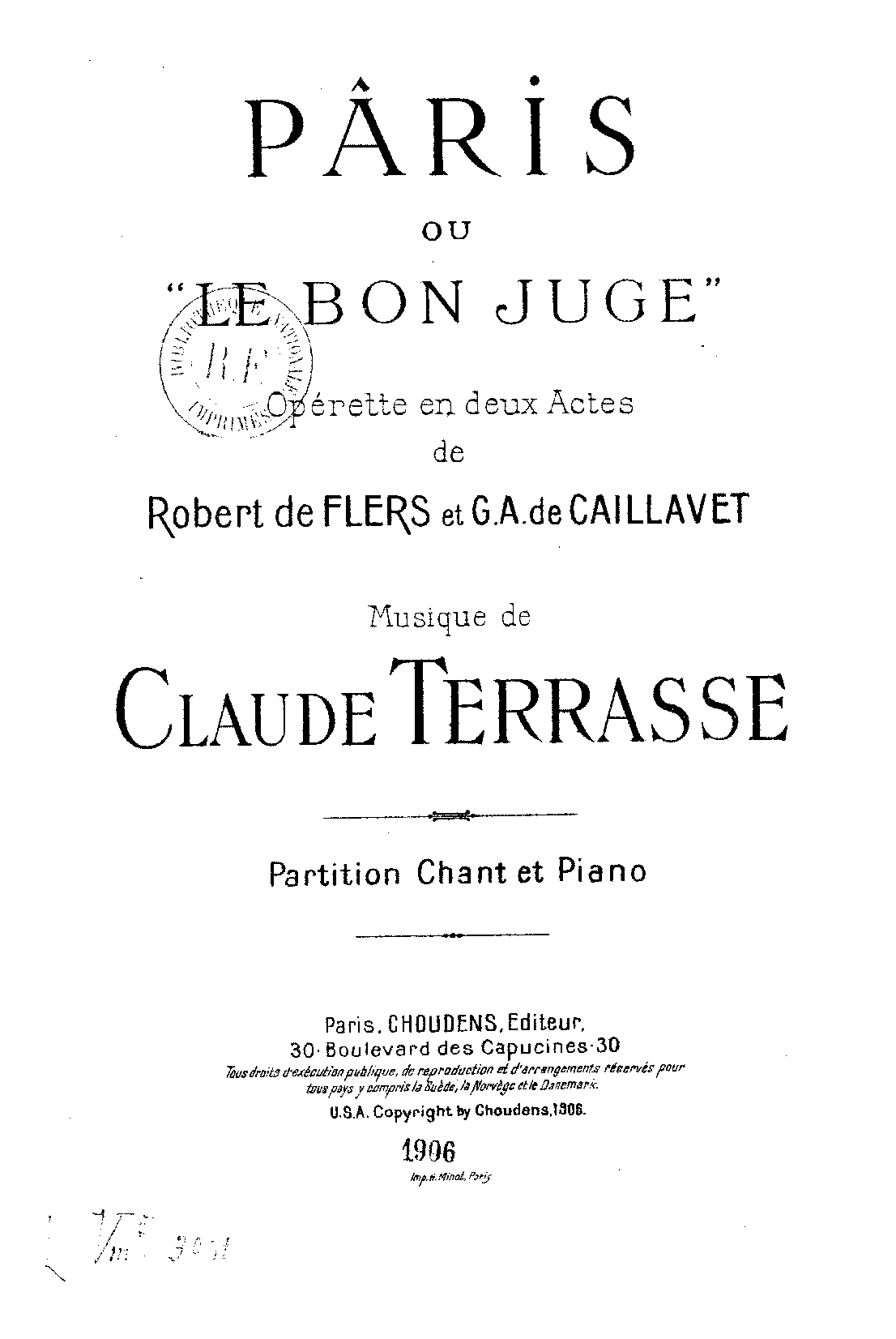 | Copyright Information | Publication noted in the Bibliographie de la France : 95e année, 2e série, Nº 23, 9 Juin 1906, p.358, reg.2764 (vocal score). |