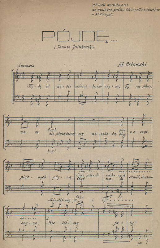 | Extra Information | "Utwór nadesłany na konkurs 'Chóru Drukarzy Lwowski', w roku 1926." |