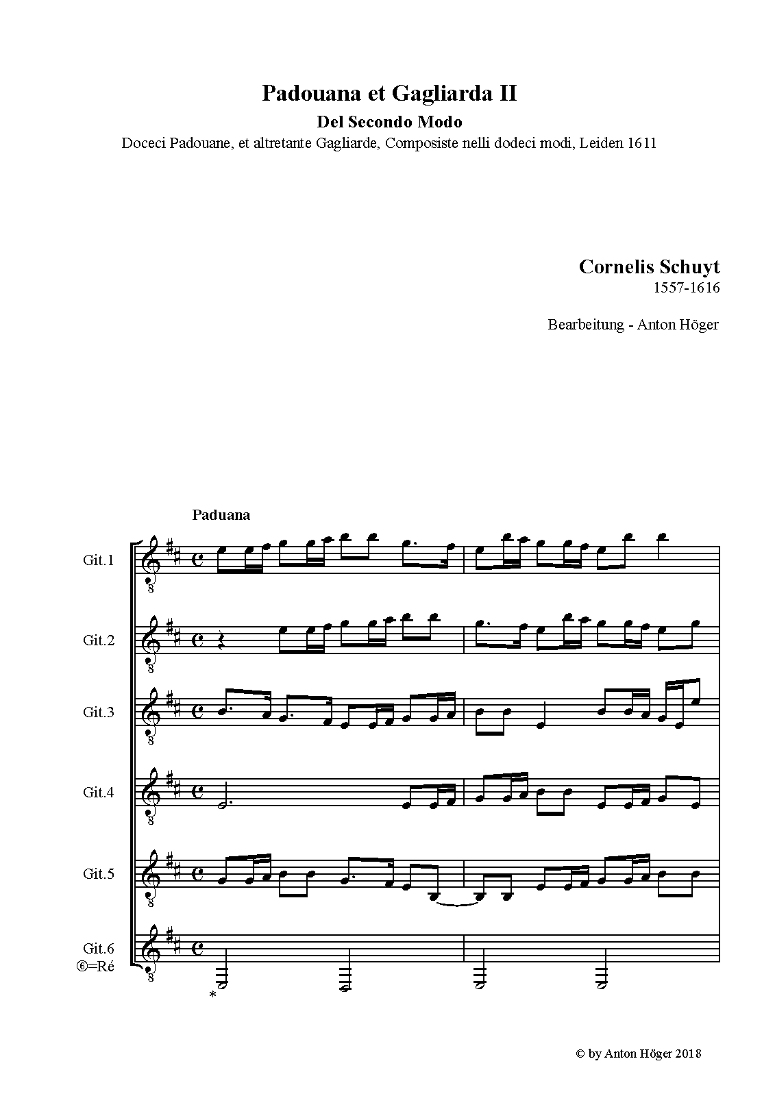 Del Secondo Modo. Padouana & Galliarda 2. Dodeci Padouane et Altretante Gagliarde, Composte nelli dodeci Modi : Con due Canzone fatte alla Francese, per sonare à Sei (Leiden, 1611)