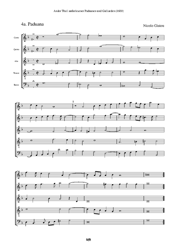 | First Publication | 1609 in Ausserlesener Paduanen und Galliarden, Ander Theil (No.4) |
