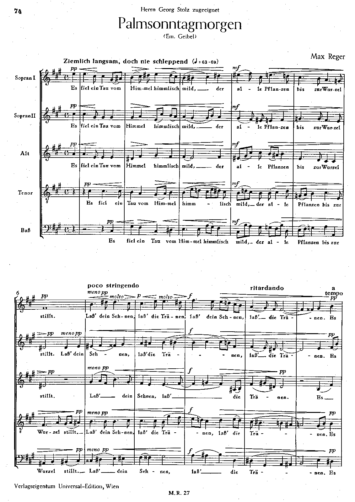 Palmsonntagmorgen, WoO VI/18 (Reger, Max)
