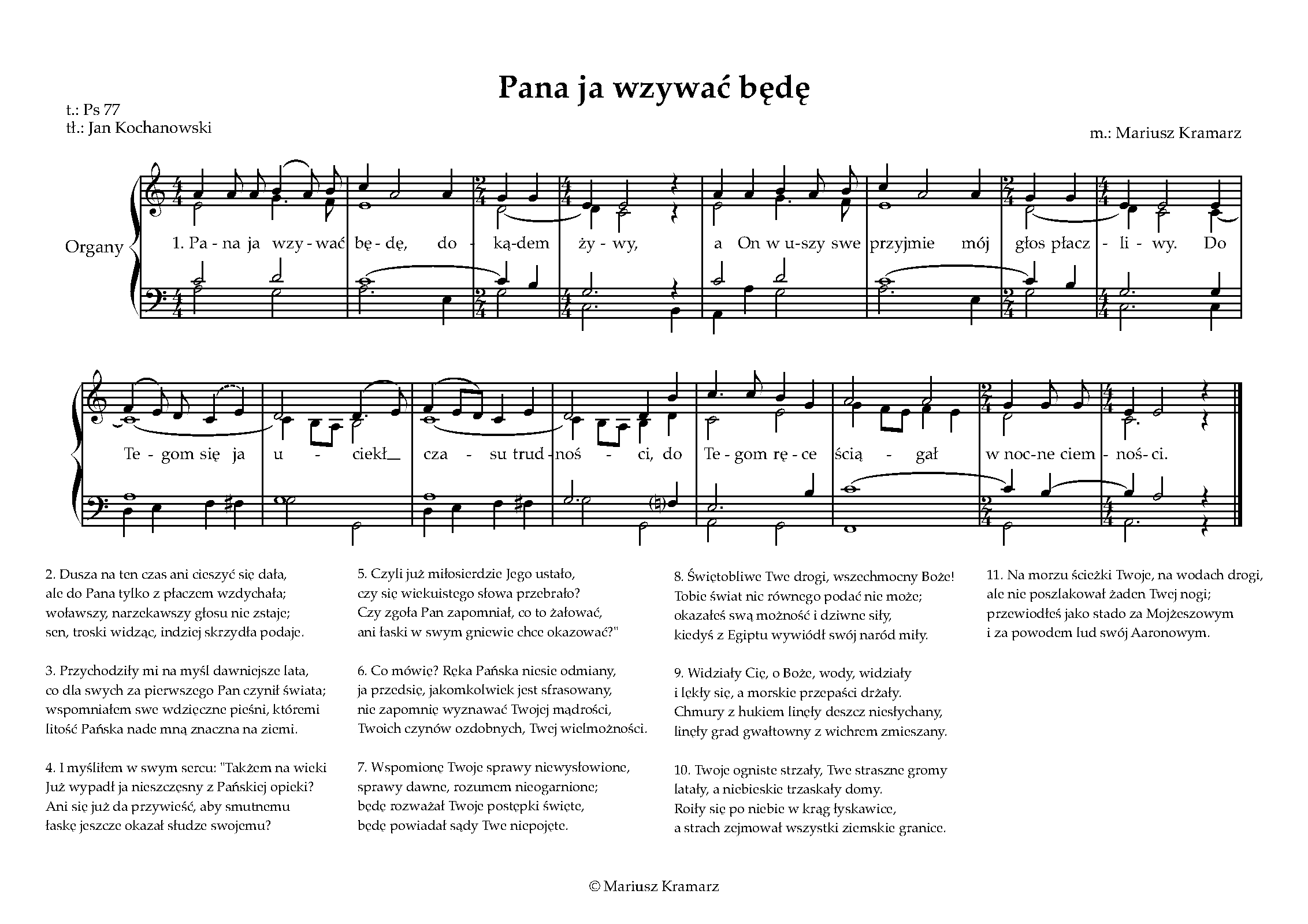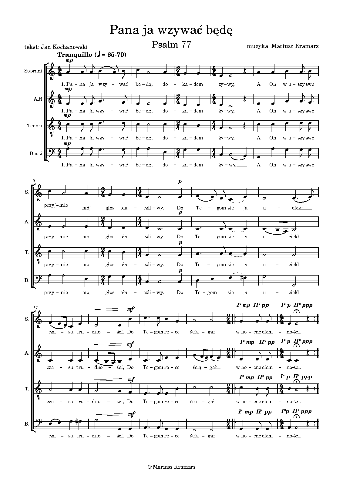 | Librettist | Psalm LXXVII, versified by Jan Kochanowski (1530–1584) |