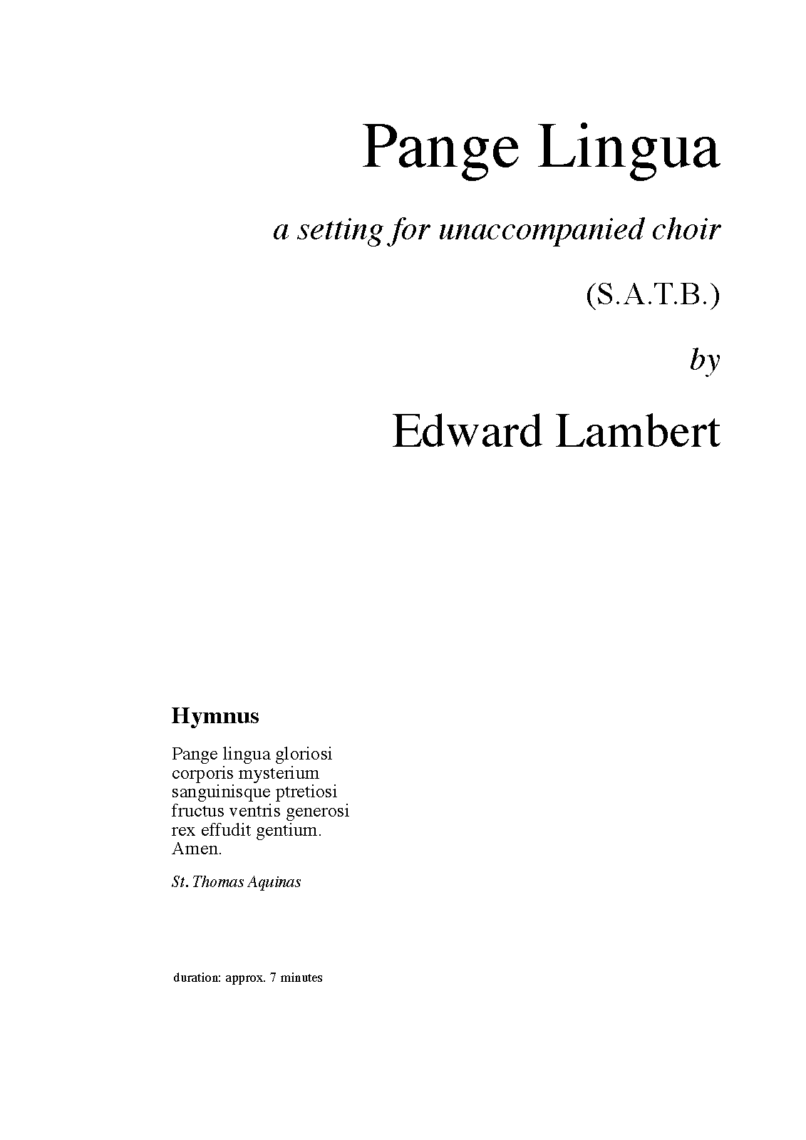 | Librettist | Thomas Aquinas (ca.1225-1274) |