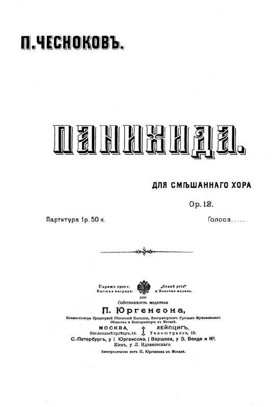 | Dedication | in memory of the composer's brother Nikolai Grigoryevich Chesnokov |