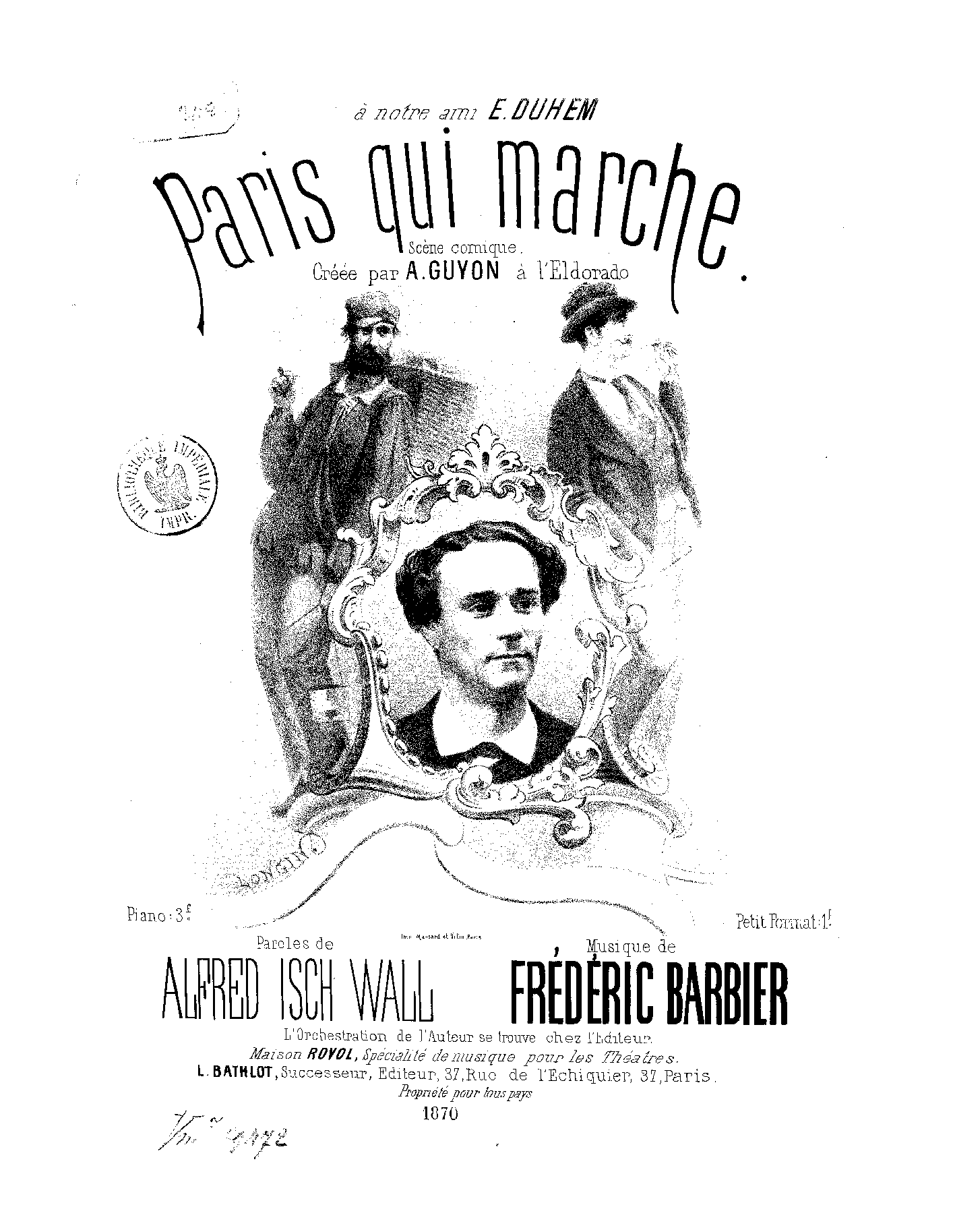 | Copyright Information | Publication noted in the Bibliographie de la France : 59e année, 2e série, Nº 13, 26 Mars 1870, p.145, reg.779 (vocal score). |