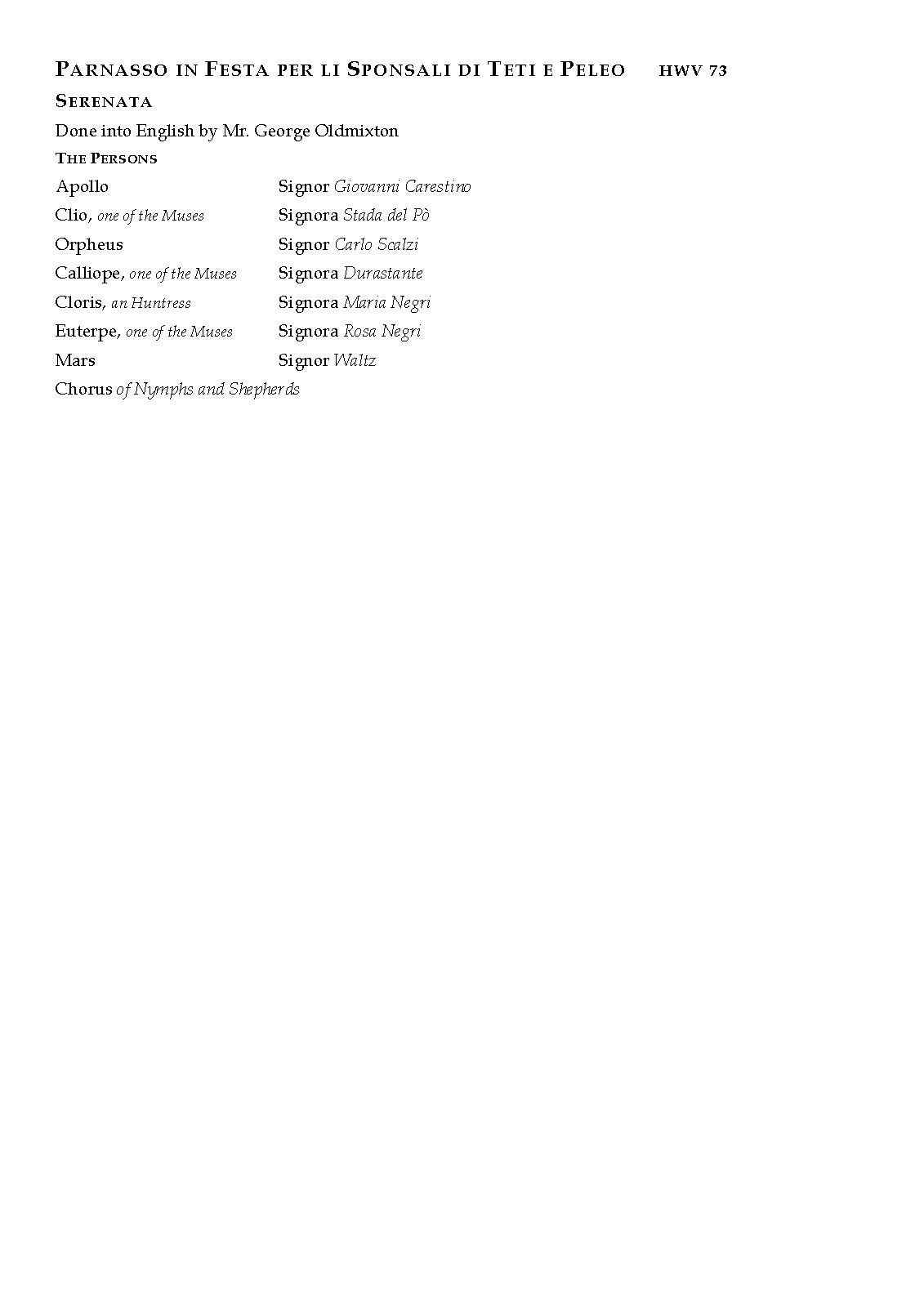 Parnasso in festa, per li sponsali di Teti e Peleo; Serenata