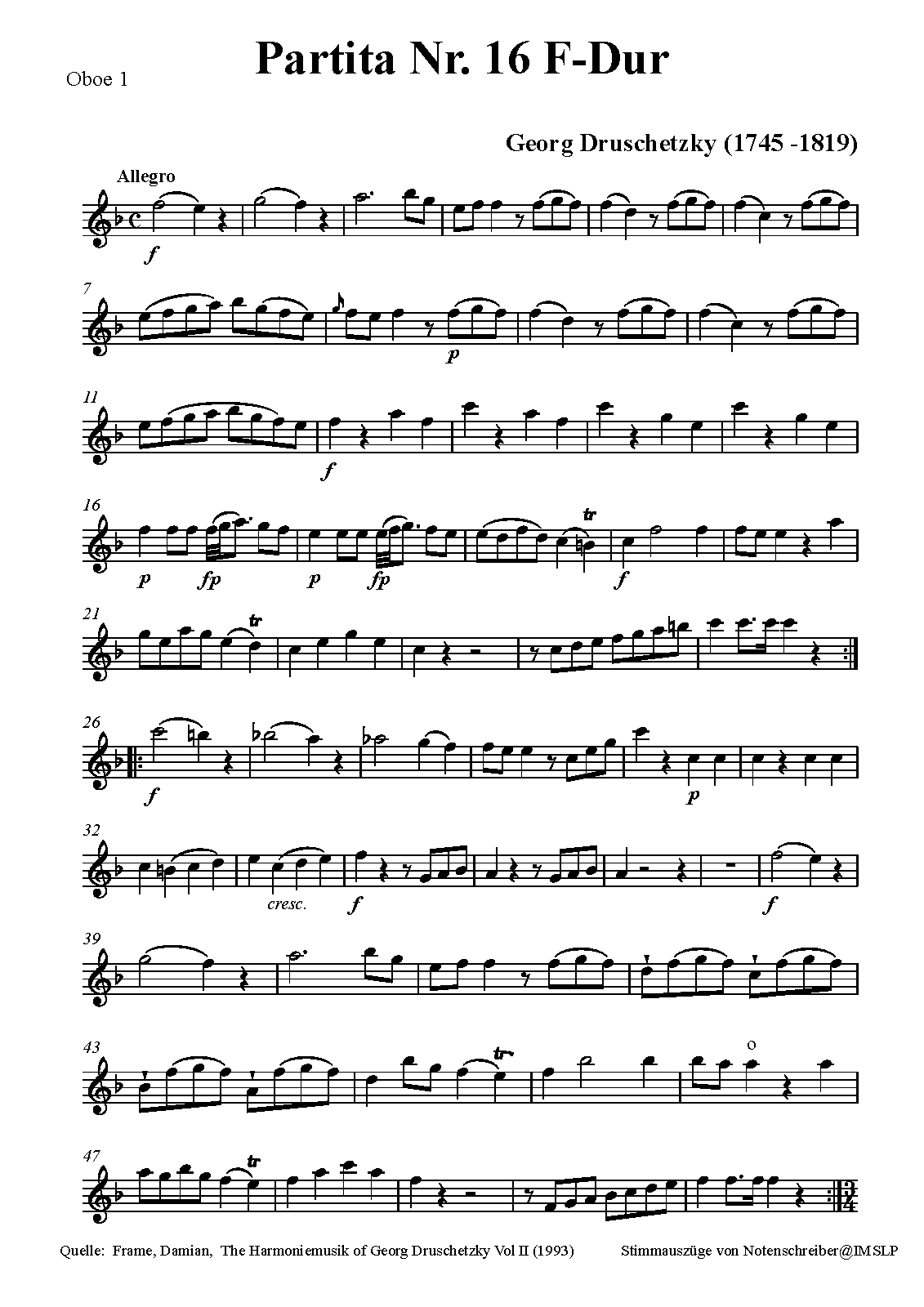 | Genre Categories | Partitas; For 2 oboes, bassoon, 2 horns; Scores featuring the oboe; |