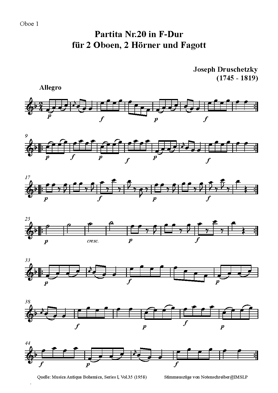 | Genre Categories | Partitas; For 2 oboes, bassoon, 2 horns; Scores featuring the oboe; |