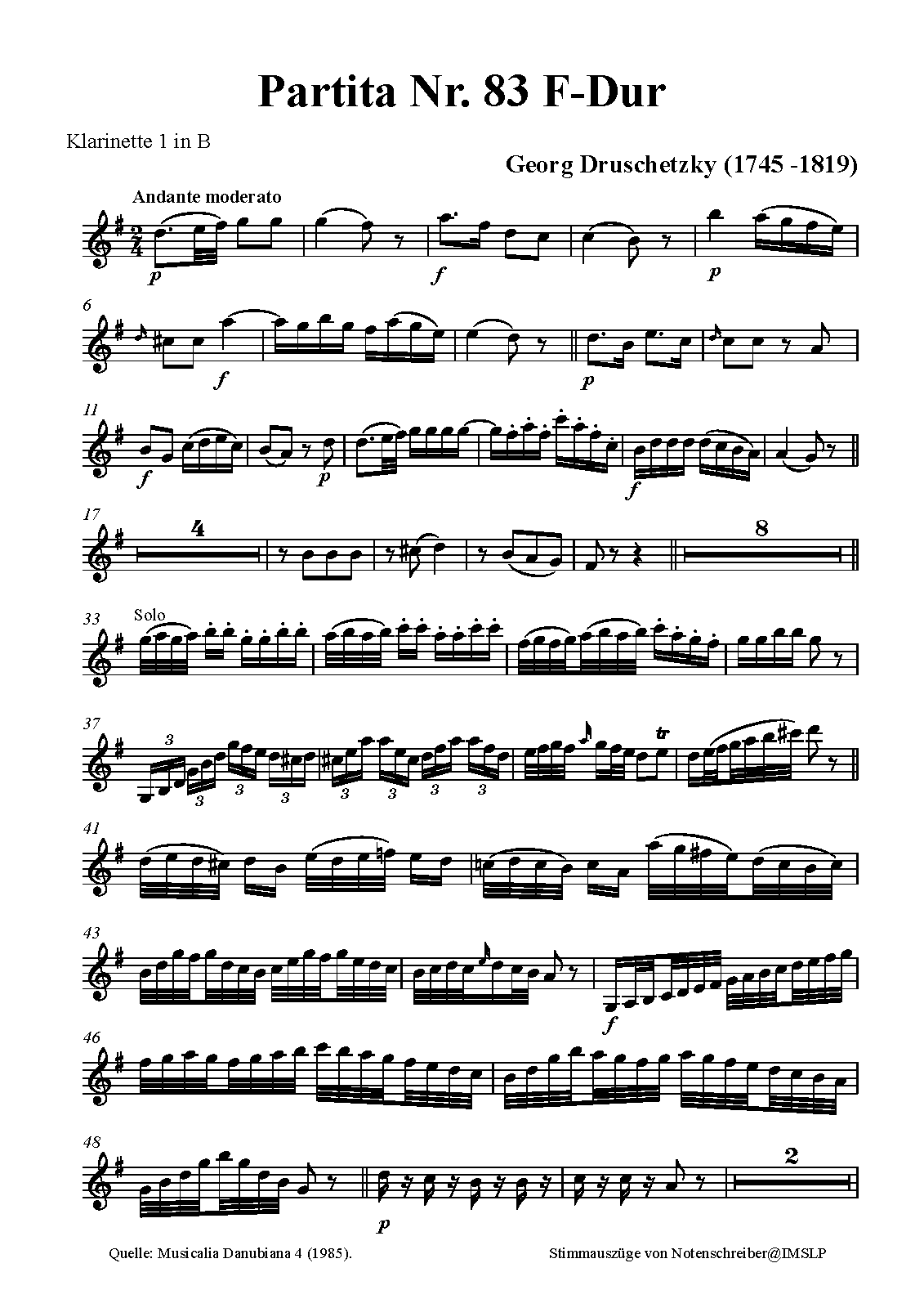 | Genre Categories | Partitas; For 2 clarinets, 2 bassoons, 2 horns; Scores featuring the clarinet; |