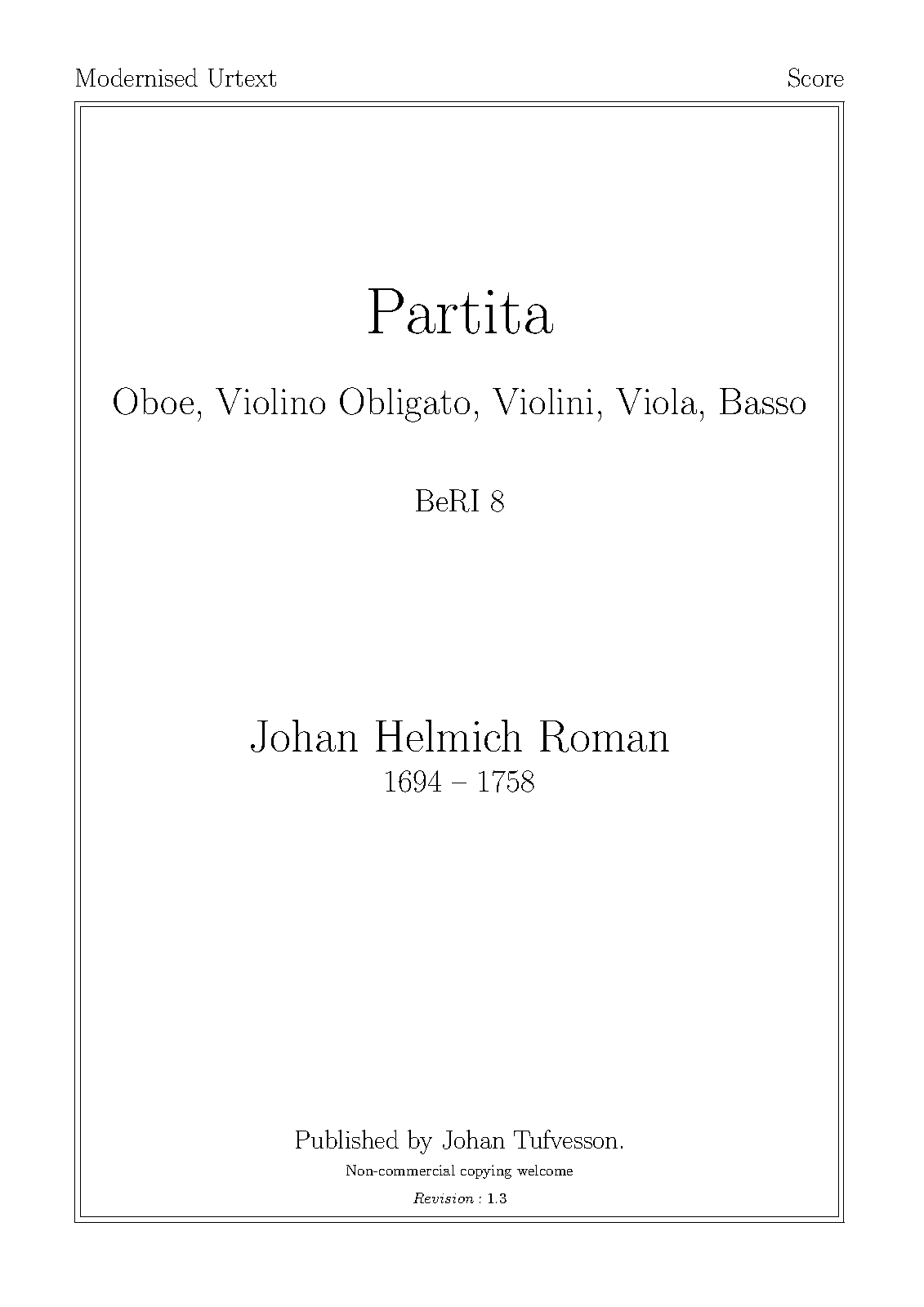 | Genre Categories | Partitas; For oboe, violin, strings, continuo; Scores featuring the oboe; |