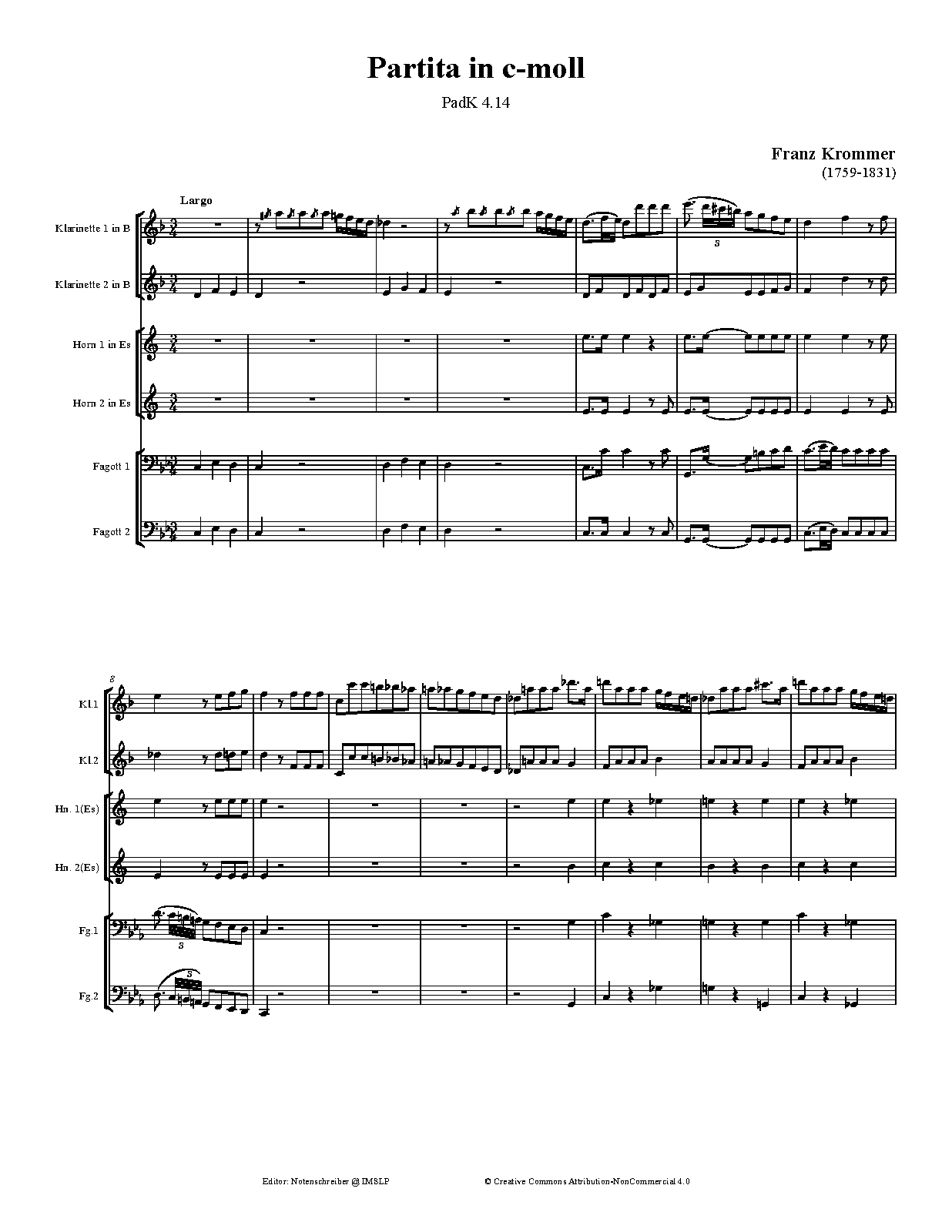 | Genre Categories | Partitas; For 2 clarinets, 2 bassoons, 2 horns; Scores featuring the clarinet; |