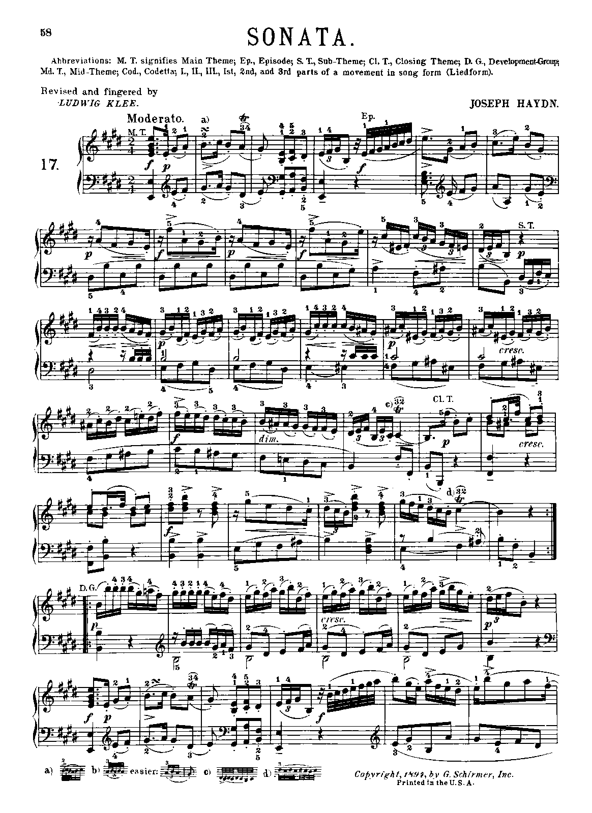 Twenty Piano Sonatas, Book II, No.17 (pp.58-62) New York: G. Schirmer, No. 296, 1894. Plate 11711.