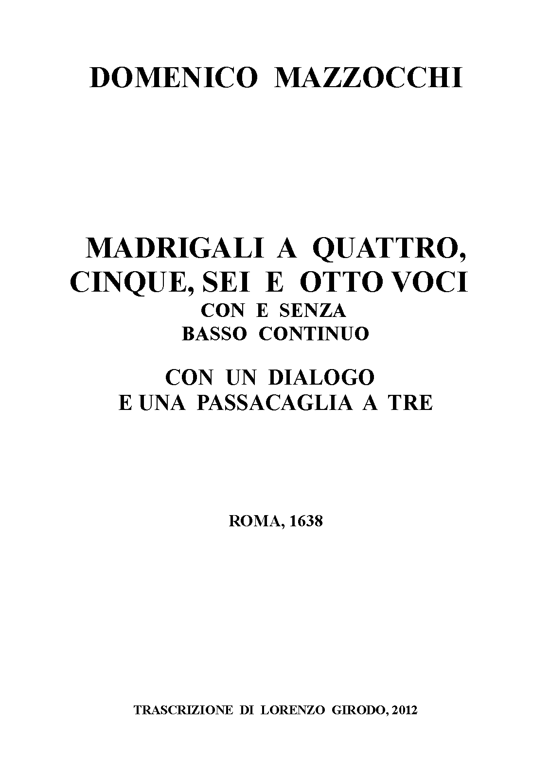 | Alternative. Title | Partitura de' Madrigali a cinque voci, e d'altri varij Concerti |
