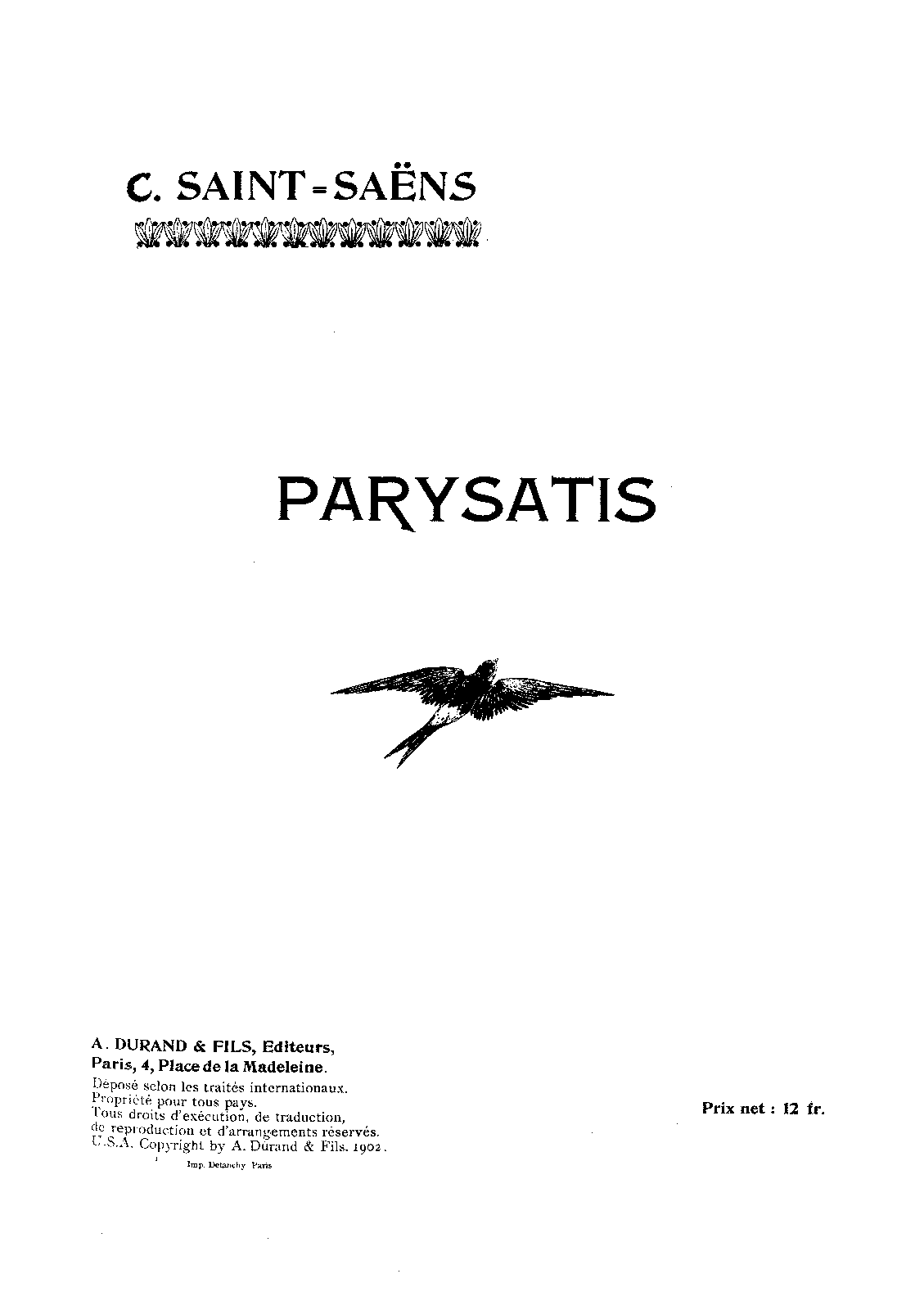 Paris: A. Durand et Fils, 1902. Plate D. & F. 6094.