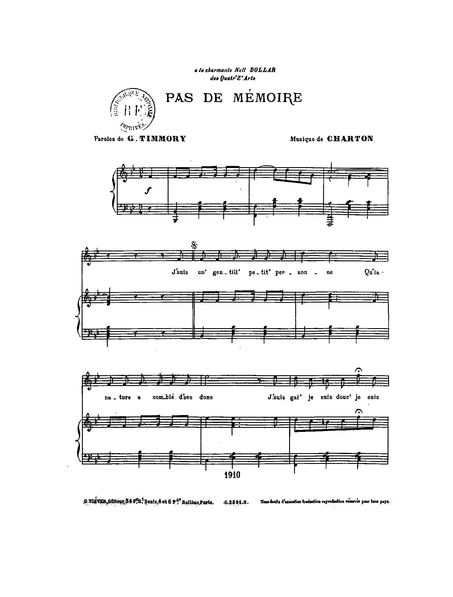 | Dedication | à la charmante Nell Dollar, des Quatr'Z' Arts |