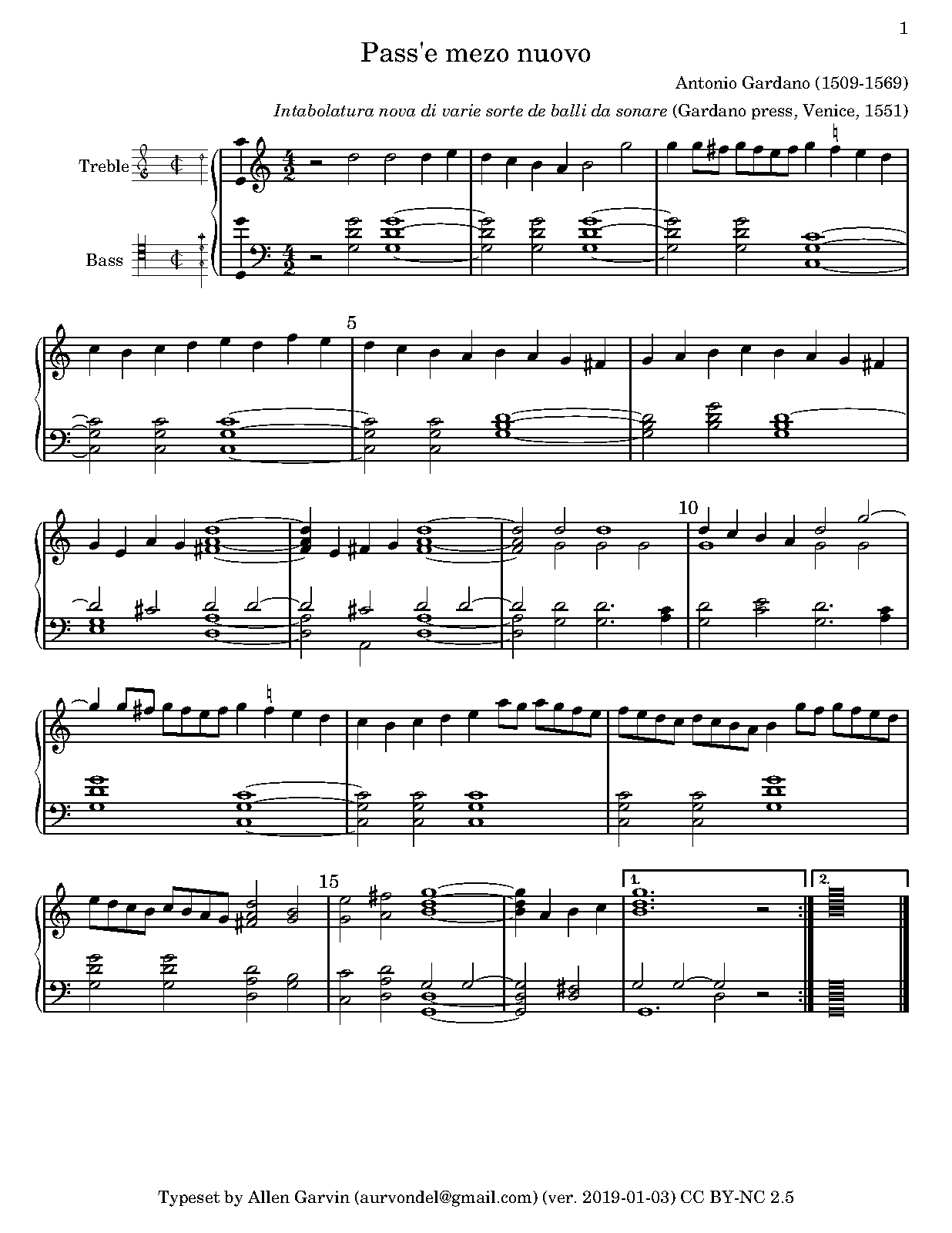 | First Publication | 1551 in Intabolatura nova di varie sorte de balli da sonare (Gardano press, Venice) |