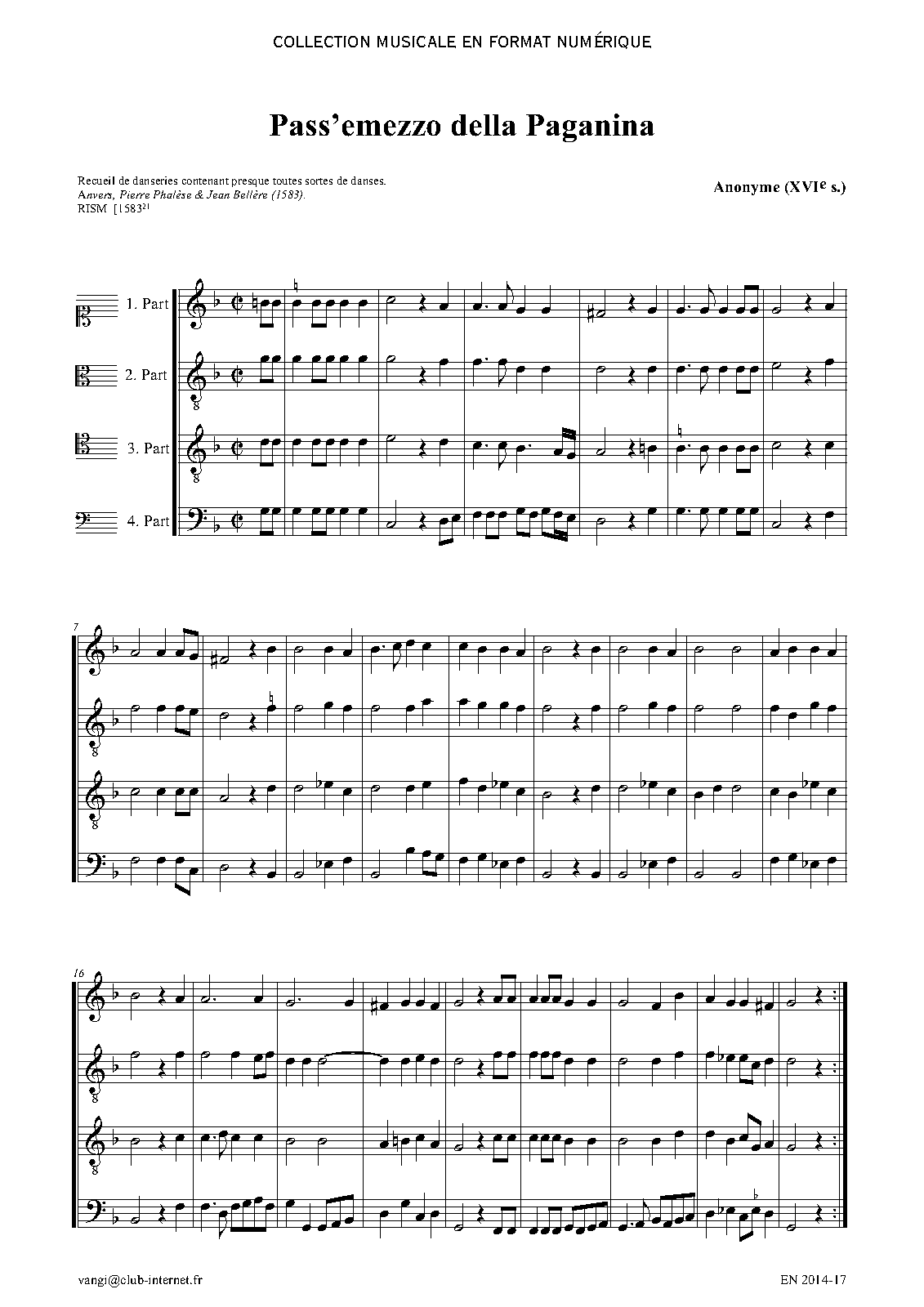 | Genre Categories | Passamezzos; Dances; For 4 instruments; |