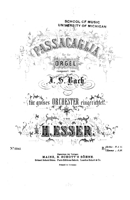 Misc. Notes Passacaglia für grosses Orchester eingerichtet von H. Esser. (4 Viol. I, 3 Viol. II, 2 Viol., 3 Cell., 3 Bss. und 10 Bläser). WorldCat.